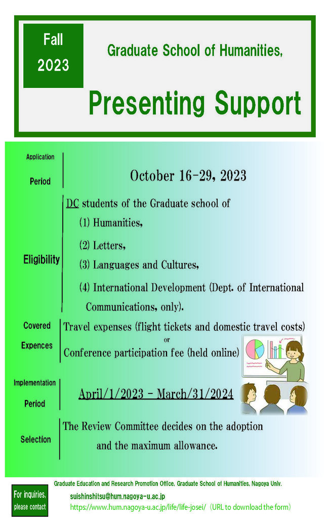 募集対象:(学会発表奨励金)今年度、博士後期課程に在籍する学生